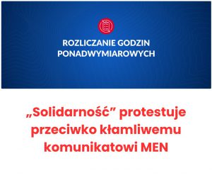 Krajowa Sekcja Oświaty i Wychowania NSZZ „Solidarność” stanowczo protestuje przeciwko niezgodnemu z prawdą przekazowi Ministerstwa Edukacji Narodowej dotyczącym nowych zasad rozliczania godzin ponadwymiarowych.