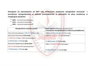 Solidarność domaga się wprowadzenia od 2027 roku mechanizmu powiązania wynagrodzeń nauczycieli z przeciętnym wynagrodzeniem w sektorze przedsiębiorstw, w odniesieniu do pracy zasadniczej. oto propozycja: